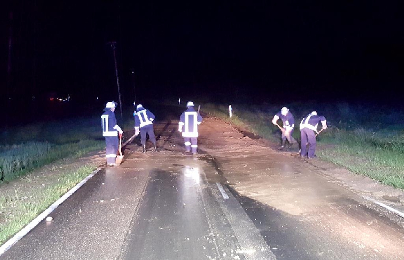 Am späten Abend wurden wir zusammen mit der Feuerwehr Niederwallmenach alarmiert. Die K91 war vom Schlamm überspült. Die örtliche Einheit war selbst im Einsatz in St. Goarshausen, so dass wir in die Nachbar-VG zur Unterstützung alarmiert wurden. Mit Hilfe eines Frontladers wurde die Straße vom Schlamm befreit. Wir spülten anschließend mit dem Schnellangriffschlauch die Straße sauber. Kurz später wurde uns eine weitere Verschmutzung hinter Niederwallmenach nach Reitzenhain gemeldet.
