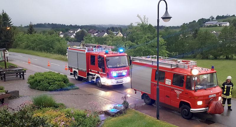 Keller unter Wasser, Wasser lief wie bei einem Sprinbrunnen nach, so blieb unsere Tachpumpe zur Unterstützung der Einheit Strüth bis zum Mittag vor Ort (Die Einsatzzeiten sind für alle Einsätze des Tages zusammen)